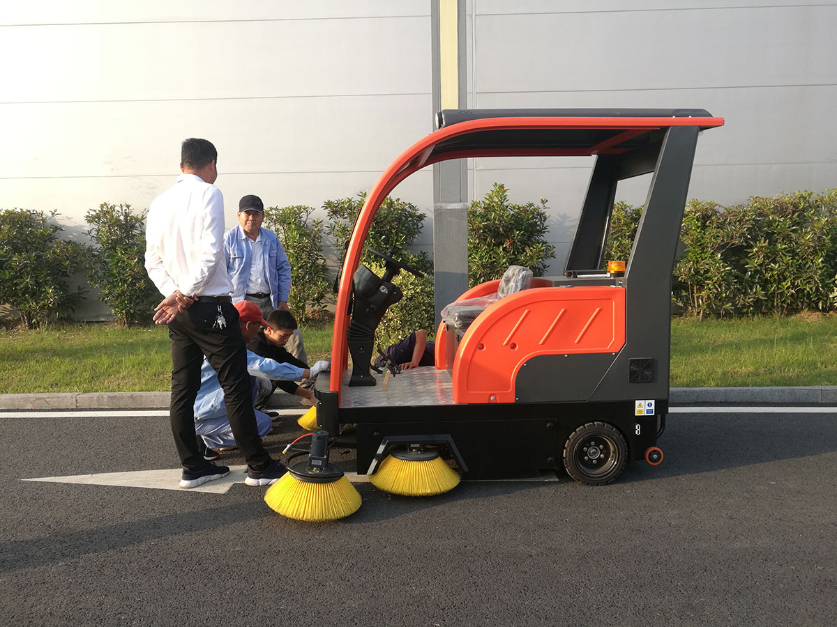 我司給客戶推薦了我司全封閉駕駛式式的掃地車DS10。經過客戶同意后我司于隔天將機器送與客戶。御衛仕全封閉駕駛式DS10它的清掃寬度是大于2100mm的,適合客戶這邊大面積清掃的需求。DS10它配有四..